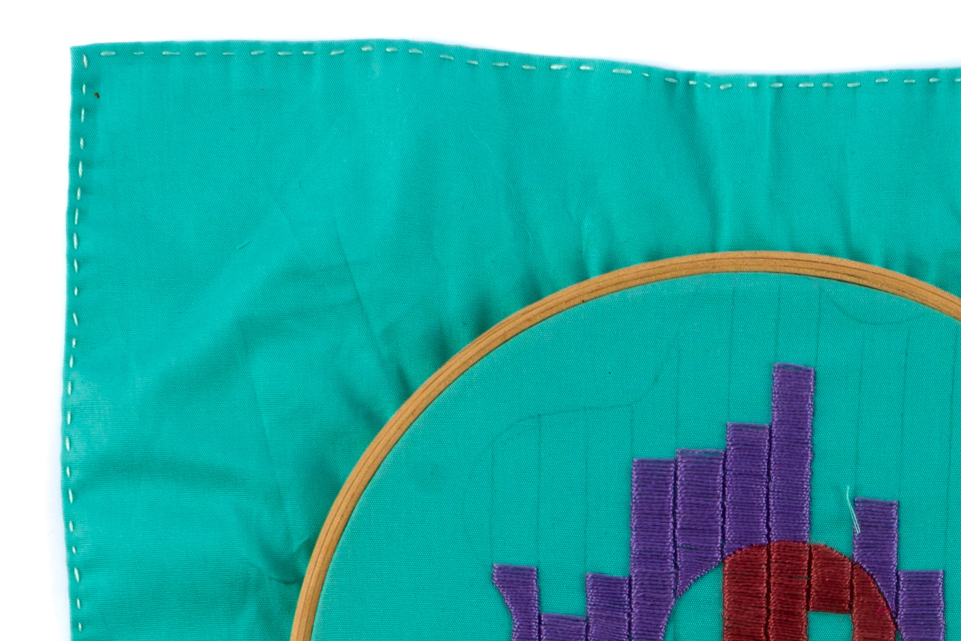 bordado em linha de algodão e agulha sobre tecido com bastidor
