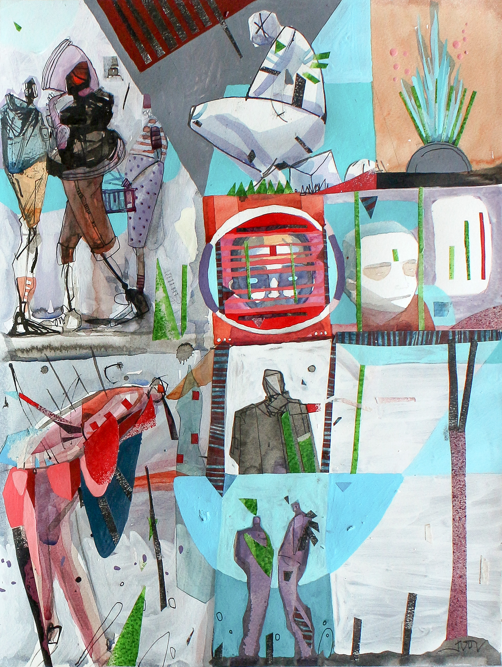 pintura em técnica mista e colagem sobre papel